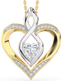A celebration of everlasting love, this pendant merges the elegance of a flowing infinity loop with the warmth of a heart-shaped silhouette. At the center glows a brilliant heart-cut gem, cradled in a sleek embrace of gold and shimmering accents. Graceful and deeply symbolic, this design captures the promise of love without end, making it a meaningful keepsake for any cherished bond.