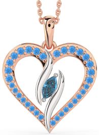 Large London Blue Topaz & Swiss Blue Topaz Platinum & Rose Gold Heart Necklace