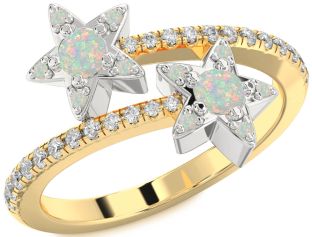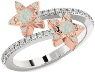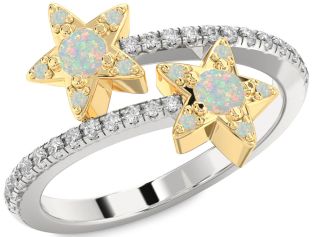 Opal and Amethyst Star, Circle, Lock and Interlock Rings Jul Ruby