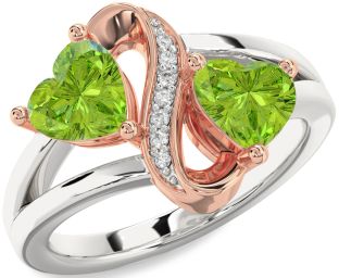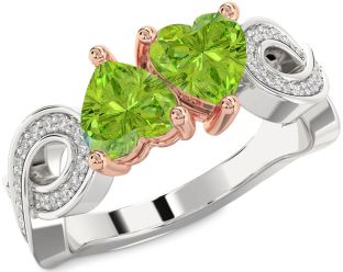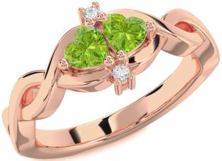 Peridot Infinity and Interlock Rings Jul Ruby