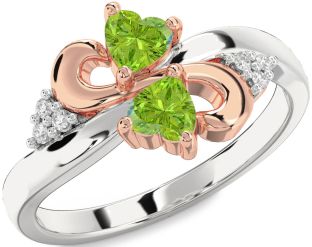 Peridot Infinity and Interlock Rings Jul Ruby