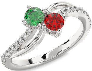 Platinum Emerald and Ruby Mothers, Infinity and Lock Rings Jul Ruby