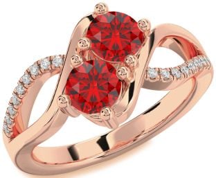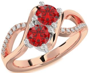 Rose Gold Emerald, Ruby and Diamond Couples and Infinity Rings Jul Ruby