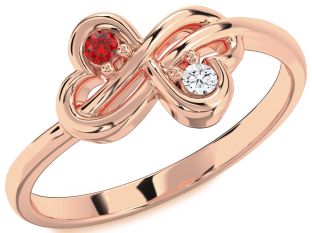 Rose Gold Ruby and Diamond Infinity, Sun and Crown Rings Jul Ruby