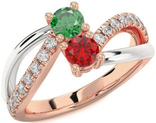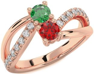 Rose Gold Emerald and Ruby Couples, Infinity, Crown and Bear Rings Jul Ruby