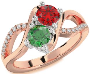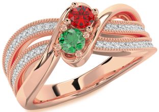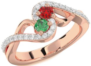 Rose Gold Emerald and Ruby Couples, Infinity, Animals and Sun Rings Jul Ruby