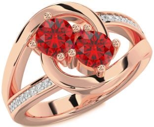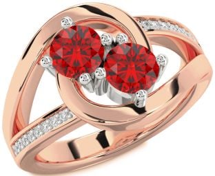 Rose Gold Emerald and Ruby Couples, Star and Sun Rings Jul Ruby