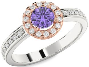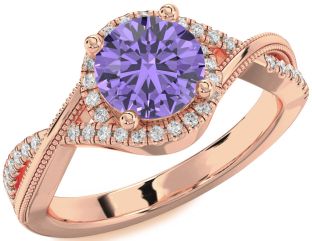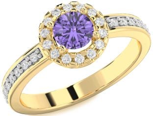 Ruby and Alexandrite Halo, Sun and Interlock Rings Feb Amethyst and Jul Ruby
