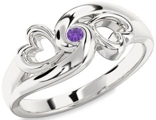 Ruby and Amethyst Infinity, Snowflake, Solitaire, Lock and Interlock Rings Feb Amethyst and Jul Ruby