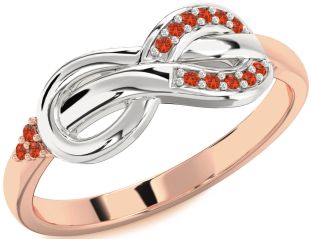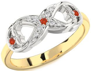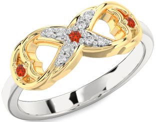 Ruby and Fire Opal Bow, Infinity, Circle and Interlock Rings Feb Amethyst and Jul Ruby