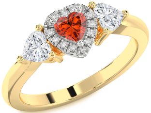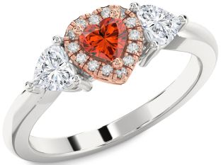 Ruby and Fire Opal Heart, Solitaire, Lock and Interlock Engagement