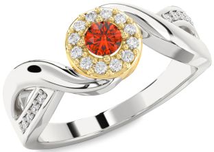Ruby and Fire Opal Halo, Solitaire, Sun, Circle and Interlock Rings
