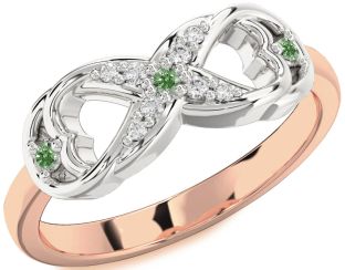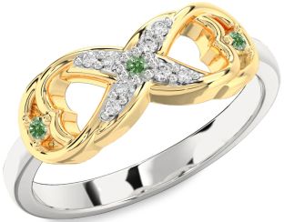 Ruby and Green Diamond Infinity, Solitaire, Circle and Interlock Rings