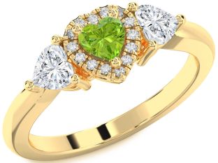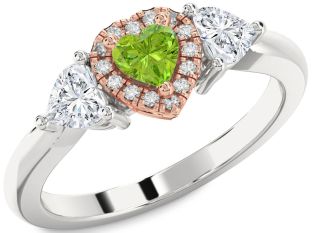 Ruby and Peridot Heart, Solitaire and Interlock Engagement