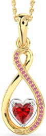 Ruby & Pink Sapphire Platinum & Yellow Gold Infinity Heart Necklace