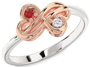 Silver & Rose Gold Ruby and Diamond Infinity and Animals Rings Jul Ruby