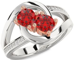 Silver & Rose Gold Emerald and Ruby Couples, Infinity and Star Rings Jul Ruby