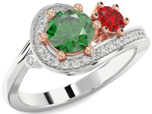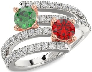 Silver & Rose Gold Emerald and Ruby Knot, Couples, Solitaire and Interlock Rings Jul Ruby
