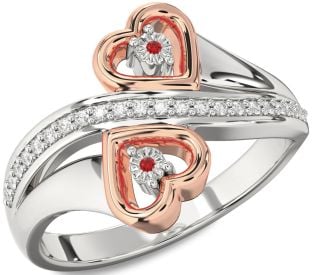 Silver & Rose Gold Ruby and Moonstone Couples, Infinity and Circle Rings Jul Ruby