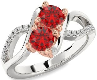 Silver & Rose Gold Ruby Couples, Infinity, Star, Circle and Bear Rings Jul Ruby