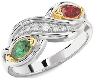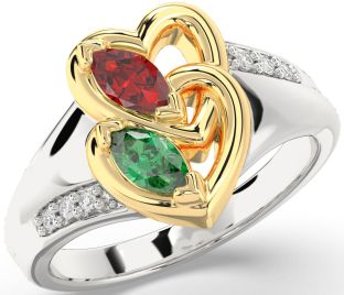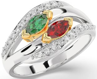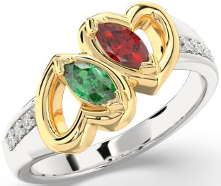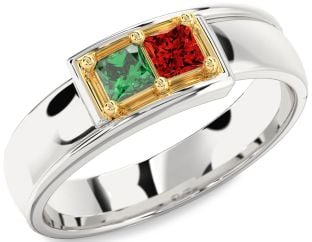 Silver & Yellow Gold Emerald and Ruby Couples and Solitaire Rings Jul Ruby