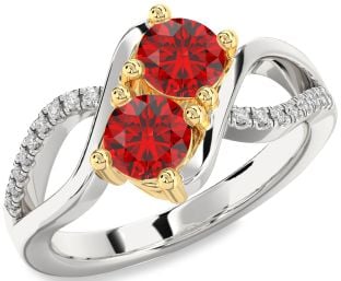 Silver & Yellow Gold Ruby Couples and Crown Rings Jul Ruby