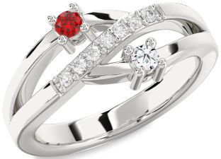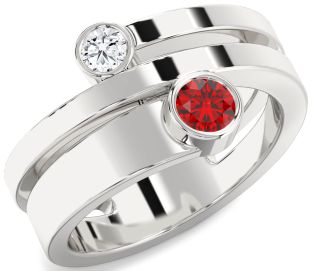 Sterling Silver Ruby and Diamond Couples, Star, Sun, Circle and Interlock Rings Jul Ruby