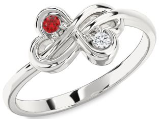 Sterling Silver Ruby and Diamond Couples, Infinity, Sun and Clover Rings Jul Ruby