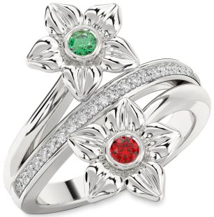 Sterling Silver Emerald and Ruby Couples, Infinity, Clover and Interlock Promise Jul Ruby