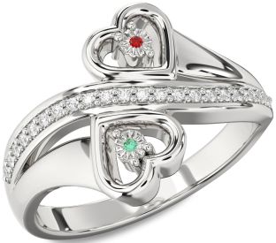 Sterling Silver Emerald and Ruby Couples, Star, Sun and Broken Rings Jul Ruby