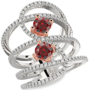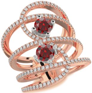 Emerald and Garnet Knot, Circle and Interlock Rings Jul Ruby