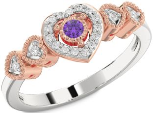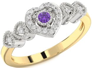 Emerald, Ruby and Amethyst Heart, Solitaire and Interlock Rings