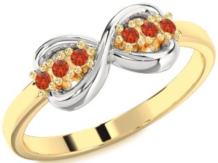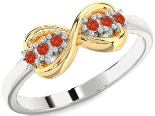 Fire Opal Infinity, Solitaire and Circle Rings Jul Ruby