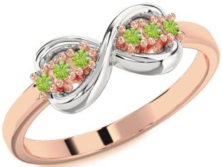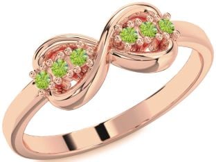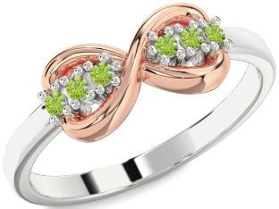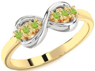 Peridot Infinity, Solitaire, Lock and Interlock Rings Jul Ruby