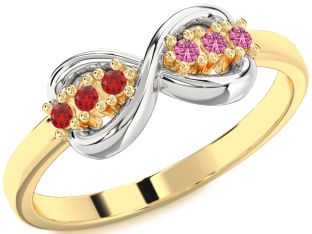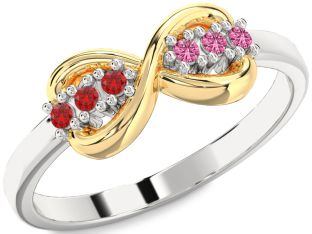 Ruby and Pink Sapphire Infinity, Bow and Interlock Rings Jul Ruby