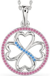 Swiss Blue Topaz & Pink Sapphire Silver Clover Circle Necklace