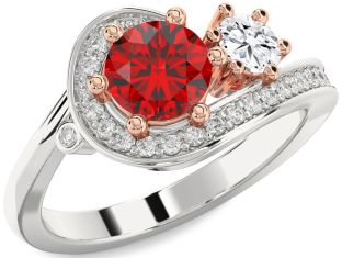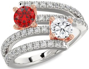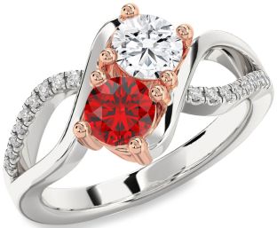 White & Rose Gold Ruby and Diamond Rings Jul Ruby