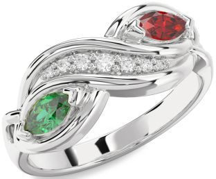 White Gold Emerald and Ruby Couples Rings