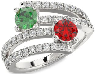 White Gold Emerald and Ruby Couples, Infinity, Star, Solitaire and Sun Rings Jul Ruby