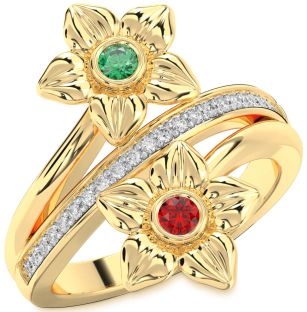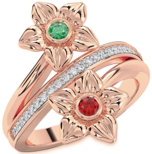 Women's Emerald and Ruby Flower, Infinity, Solitaire, Sun, Lock and Broken Rings Jul Ruby