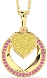 Yellow Diamond & Pink Sapphire Gold Heart Circle Necklace