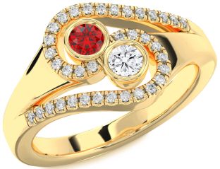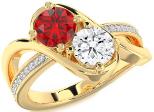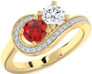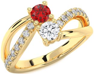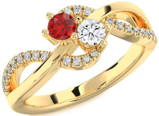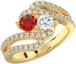 Yellow Gold Ruby and Diamond Couples and Lock Rings Jul Ruby