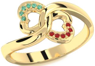 Yellow Gold Emerald and Ruby Couples, Infinity, Solitaire, Sun, Crown and Interlock Rings Jul Ruby