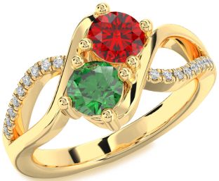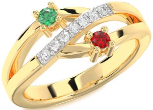 Yellow Gold Emerald and Ruby Couples and Interlock Rings May Emerald and Jul Ruby
