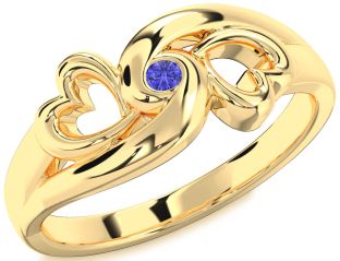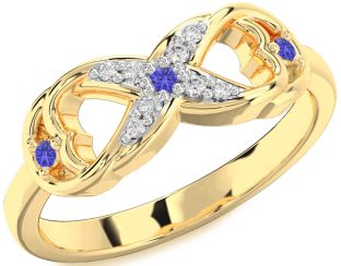 Yellow Gold Ruby and Tanzanite Infinity and Interlock Rings