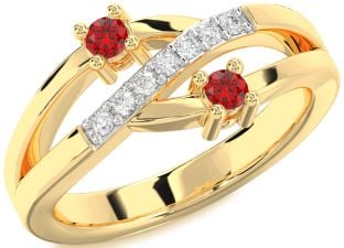 Yellow Gold Ruby Couples, Heart and Lock Rings Jul Ruby