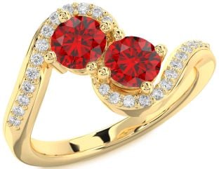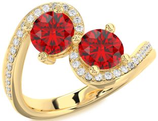 Yellow Gold Ruby Flower, Couples, Infinity, Sun, Lock and Interlock Rings Jul Ruby
