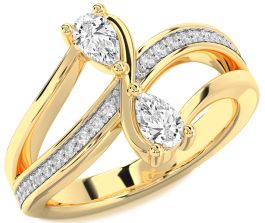 This elegant promise ring features a modern bypass design with a sleek, open-shank silhouette in yellow gold. Two teardrop-shaped gemstones—one a dazzling white and the other a serene blue—face each other in perfect harmony. Accented by a sparkling row of pavé-set diamonds that trace the curves of the band, this promise ring symbolizes unity, trust, and enduring love.