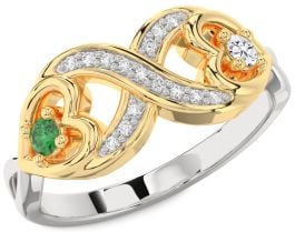 Diamond Silver & 10K gold Infinity Heart Two Stone Promise Ring