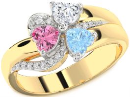 Diamond White Yellow Gold Heart Flower Three Stone Mother's Ring